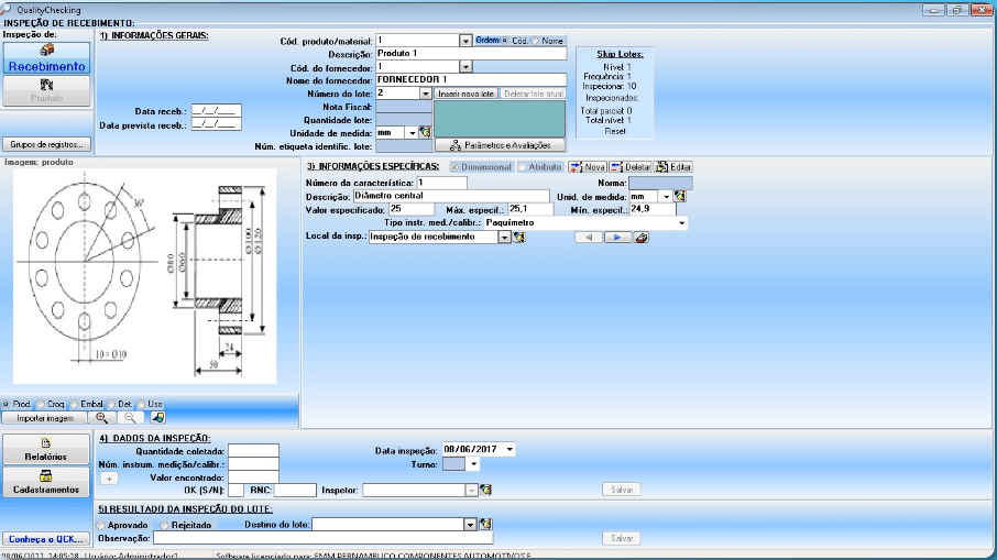 Na inspeção de recebimento, o programa possui sistema automático de qualidade assegurada por skip lotes, gera os índices da qualidade dos fornecedores, emite relatórios gerais de controle e faz várias análises gráficas da qualidade dos produtos fornecidos. O programa exibe imagens dos produtos na tela e possui vários recursos de orientação aos inspetores. Além disso, o QualityChecking é um programa que pode ser customizado para atender necessidades específicas dos clientes, mediante solicitação. O programa possui recursos de atualização automática via internet e gera backups automáticos da base de dados. É um programa feito para ser o braço direito dos inspetores no chão de fábrica, recebendo e analisando todos os registros das inspeções efetuadas de forma rápida e prática.
