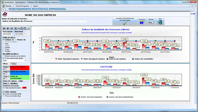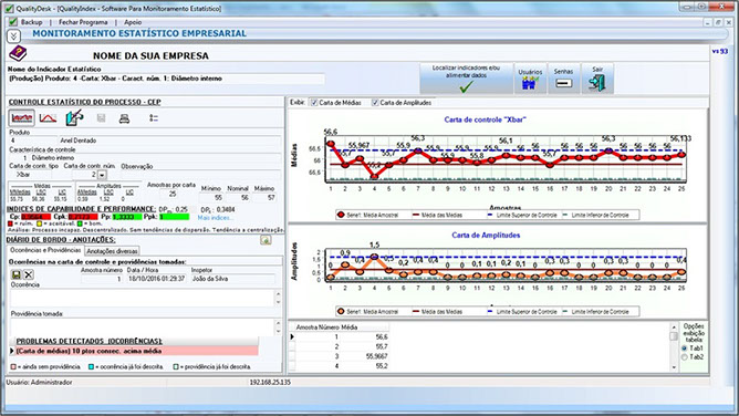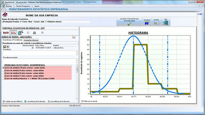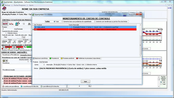 - Indicações de tendências, com alertas aos operadores e envios de e-mails de alertas a outros responsáveis pelo processo;