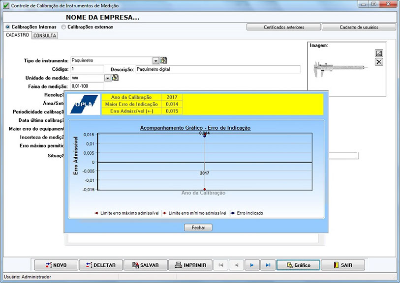 - Controle do status de calibração de cada instrumento, indicando aqueles cujas calibrações estão em dia, próximas do vencimento ou vencidas;