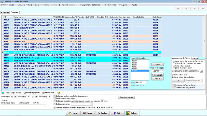 - Permite agrupar várias contas em uma só fatura, com geração de um só boleto.